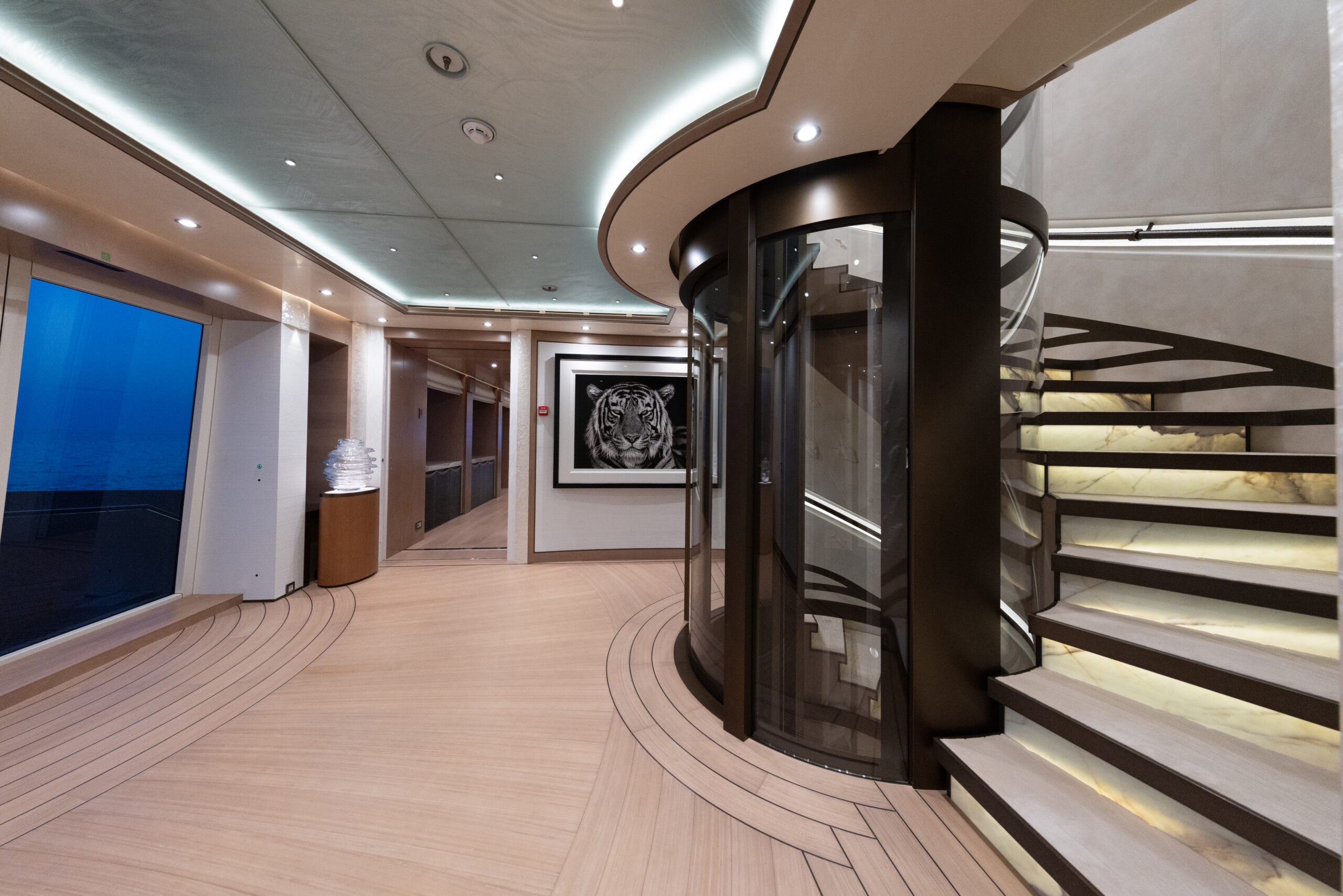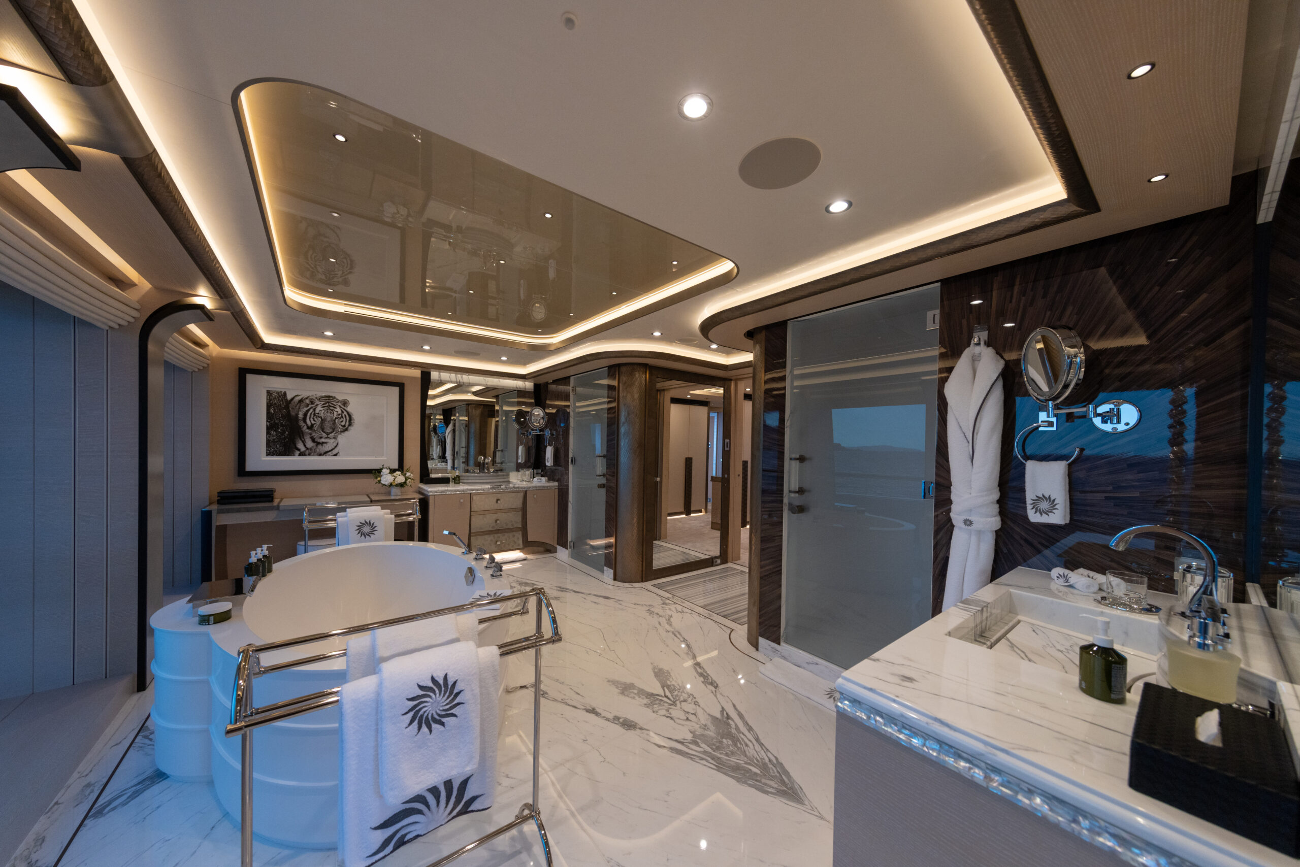 LUNA can accommodate up to 14 guests in complete privacy, thanks to its unique setup. The designers Nuvolari & Lenard/Valentina Zannier Interiors has crafted welcoming interiors that seamlessly connect to the yacht’s highly versatile exteriors. Her impressive features include a complete owner’s deck, with a private salon and jacuzzi, a wellness area, and an impressive beach club.